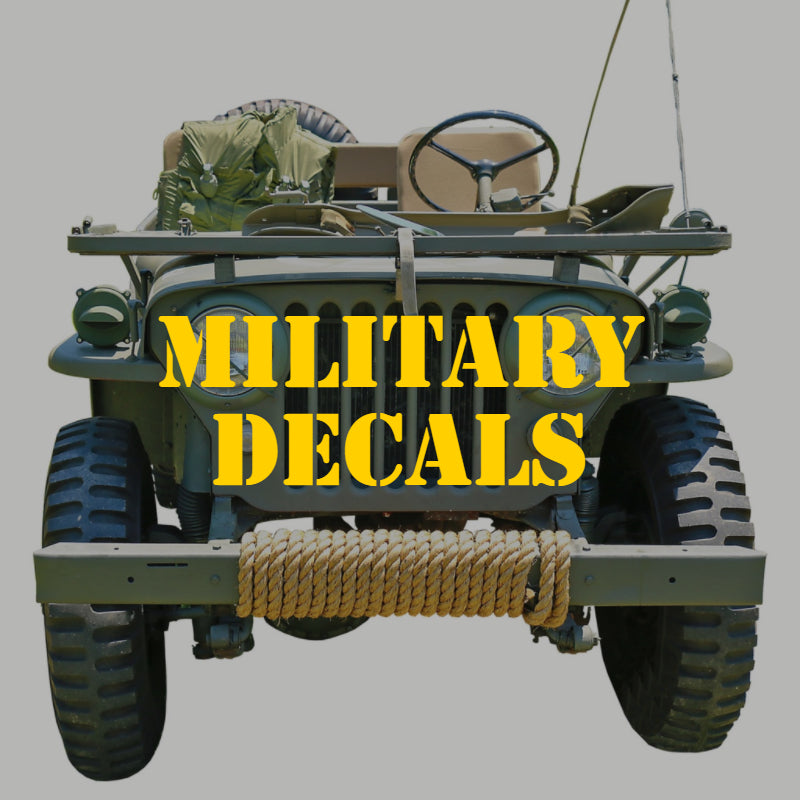 A replica of the stars that were on old military Jeeps. Larger sizes are available. Message us for pricing. All of our decals are made with a high quality 10 year automotive vinyl which means you won't have to worry about fading, shrinking, cracking, warping, peeling, or any other form of wear that comes with the use of low quality vinyl. Her...